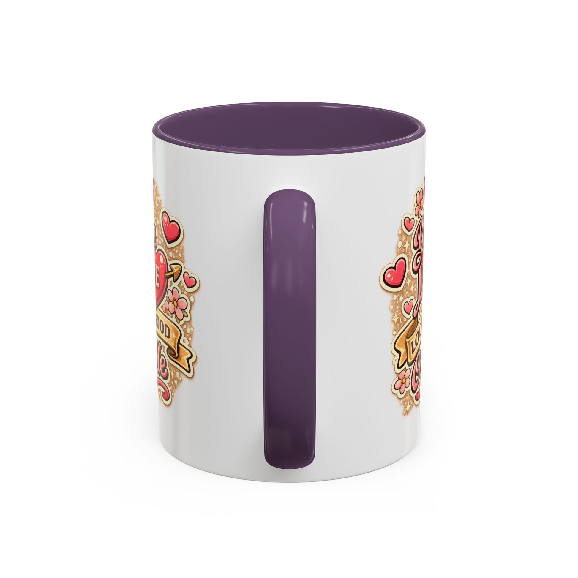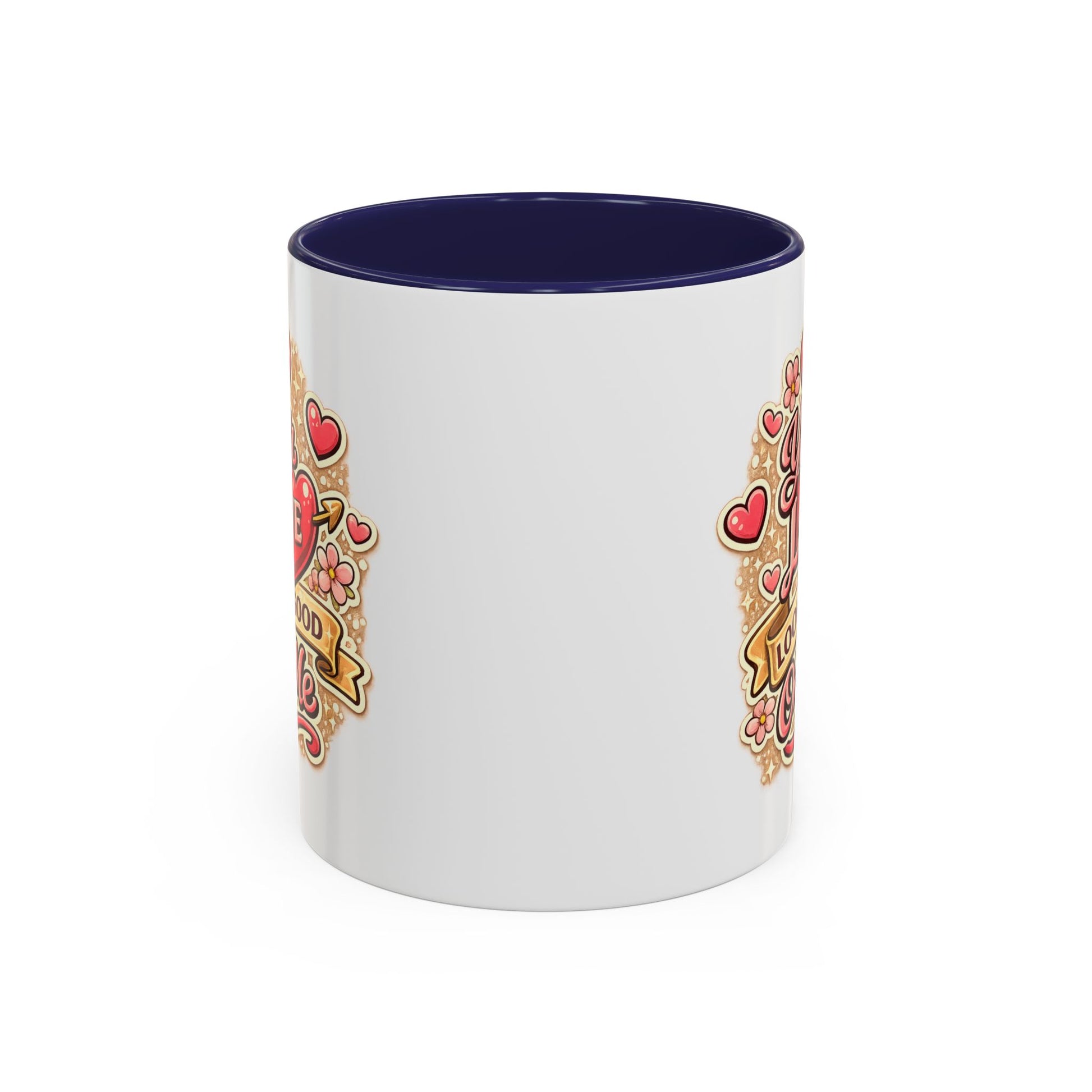 Warmth and a wink in every sip. This ceramic accent mug wraps a vintage-inspired, hand-lettered message — “Your love looks good on me” — in a playful cluster of hearts and blooms. The colored interior and handle add a pop that frames the artwork, making each morning coffee feel like a small, private celebration. It sits comfortably in hand thanks to its C-shaped handle and glossy finish, while bright printing keeps the design lively through daily dishwashing and microwaving. Use it for cozy breakfast moments, late-night tea, or to leave on a desk as a quiet reminder of someone who makes you smile.