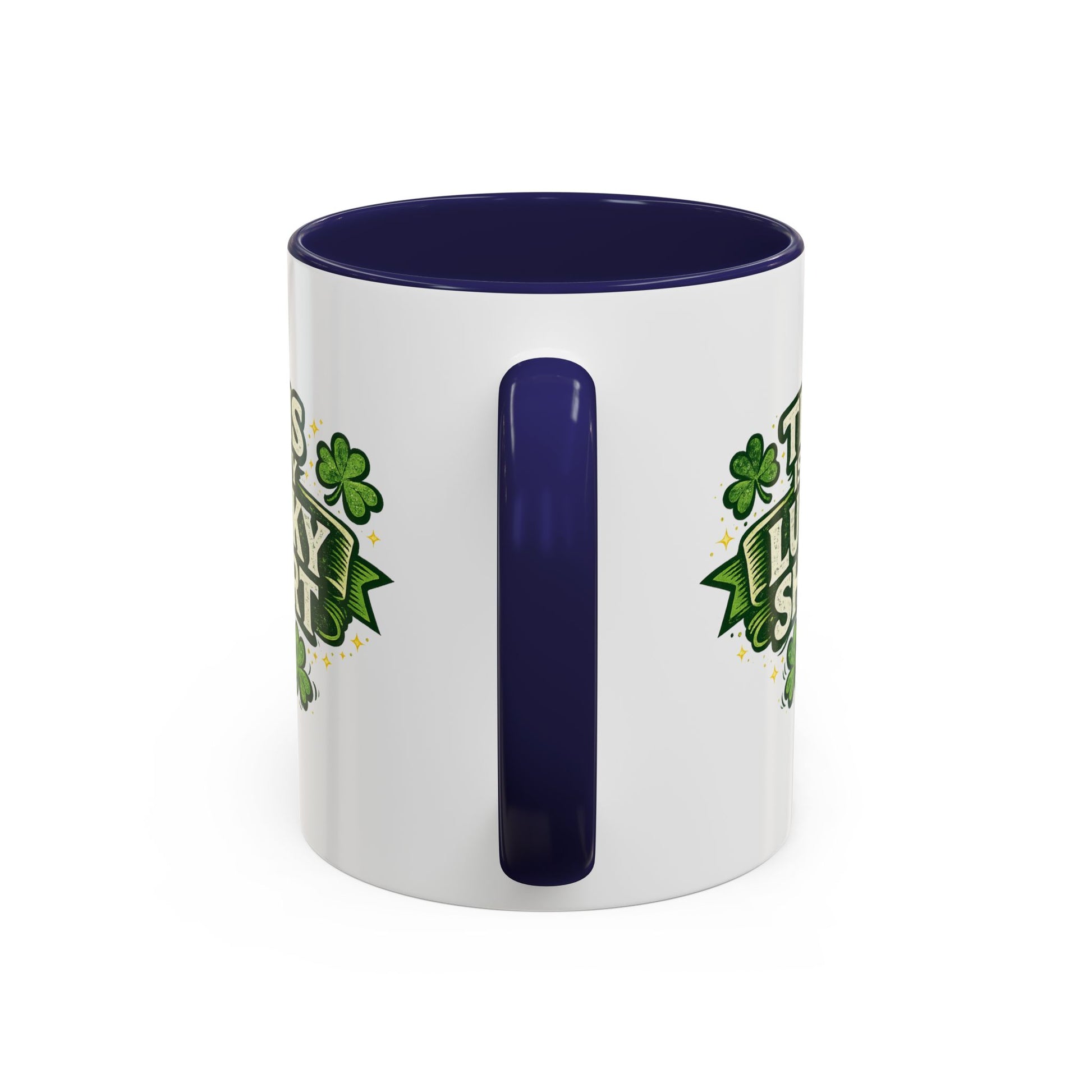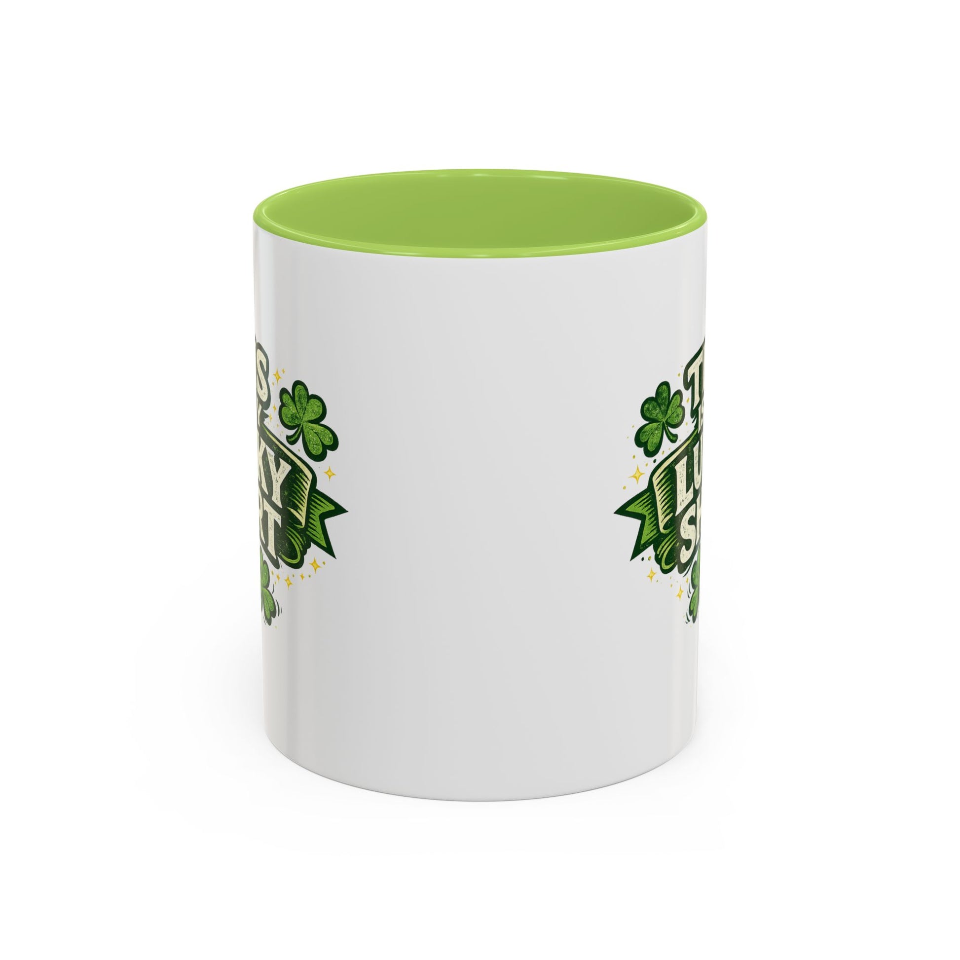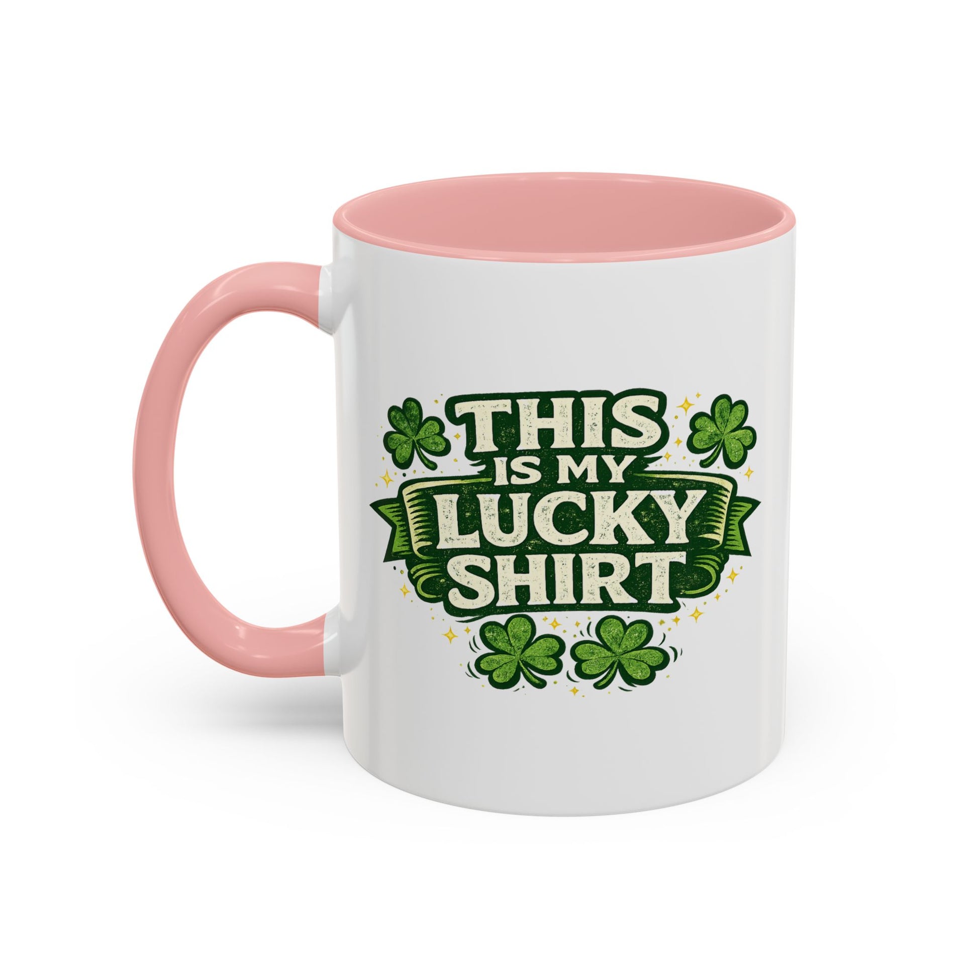 A bright, ceramic coffee mug that brings a wink of humor and St. Patrick’s Day spirit to everyday routines. Glossy white with a bold black interior and handle, the mug features a playful green graphic that reads “This Is My Lucky Shirt” surrounded by shamrocks — a tongue-in-cheek nod to lucky traditions. It feels lively on the counter, sturdy in hand thanks to a comfortable C-shaped handle, and holds either a standard or larger serving so your morning or mid-afternoon cup lasts longer. Durable printing keeps the greens vivid, and the mug tolerates microwave and dishwasher use for easy, low-effort care.